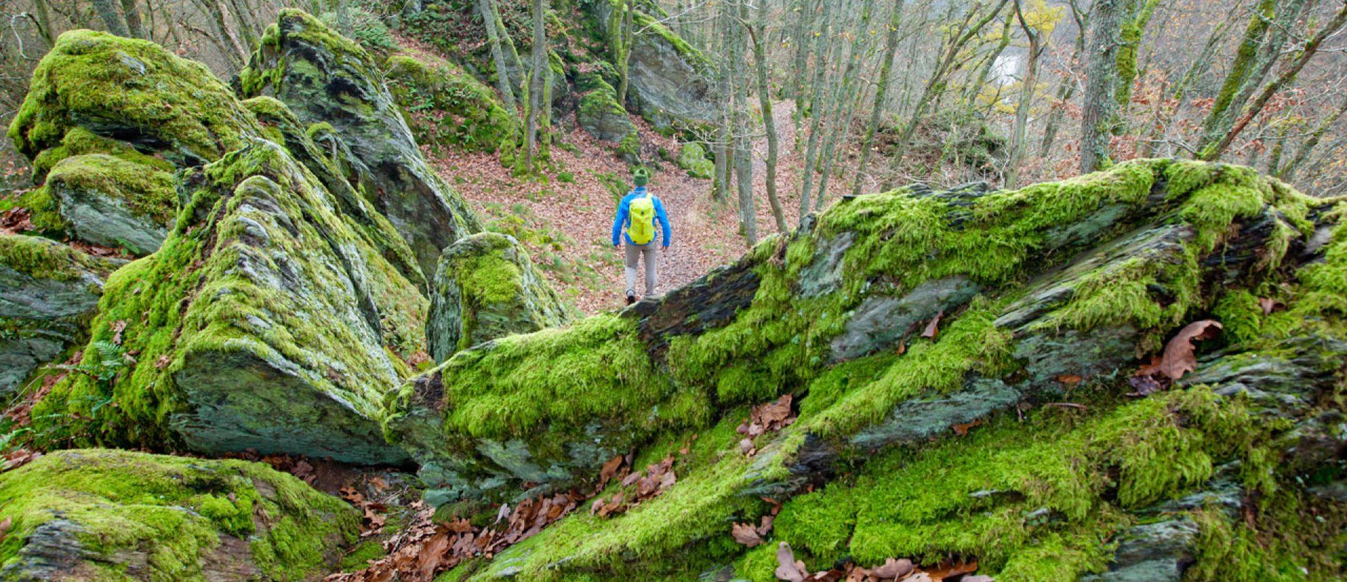 Enkele stevige hellingen met toch een kuitenbijter erbij en ook stevige afdalingen, enkele klimpartijtjes met rotsen op en af maar toch goed doenbaar, dat zijn de wandelingen in en rond Hotton.